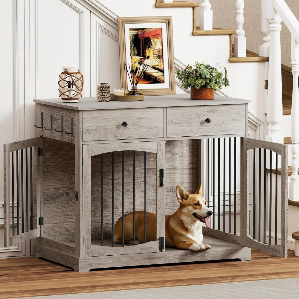 Transform your living space with a single piece that satisfies both pet comfort and interior design. The Wooden Dog Crate End Table with Storage Drawers and Double Doors is the practical, stylish kennel your home deserves.