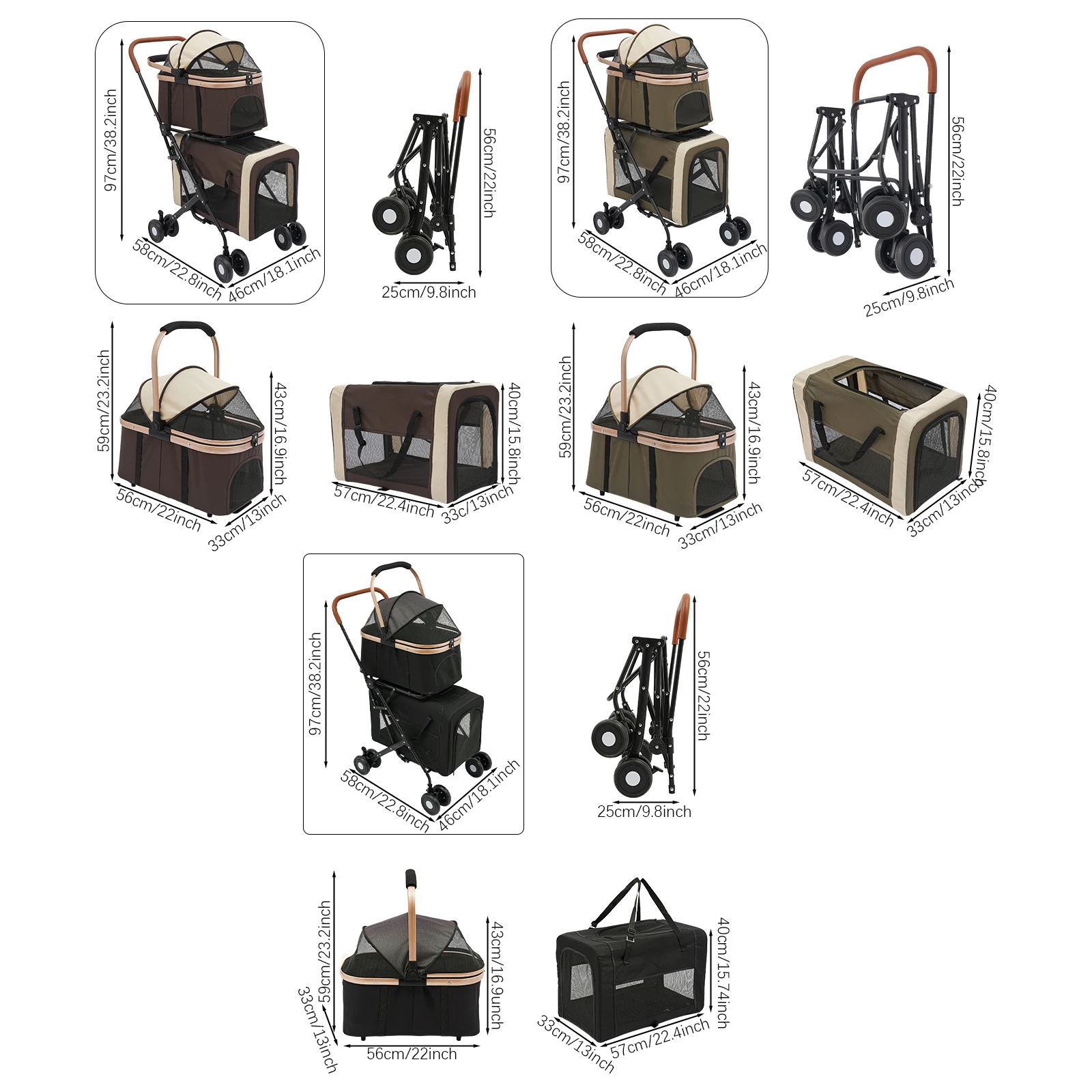 Double Tier Pet Stroller Dog And Cat Stroller Foldable Detachable For Small And Medium Dogs Universal