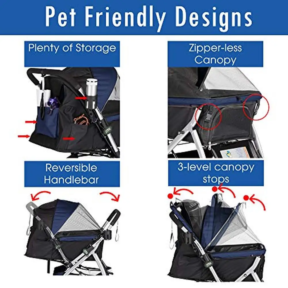 Heavy Duty Dog Cat Stroller With Convertible Compartment Reversible Entry And Brake System For Travel And Shopping