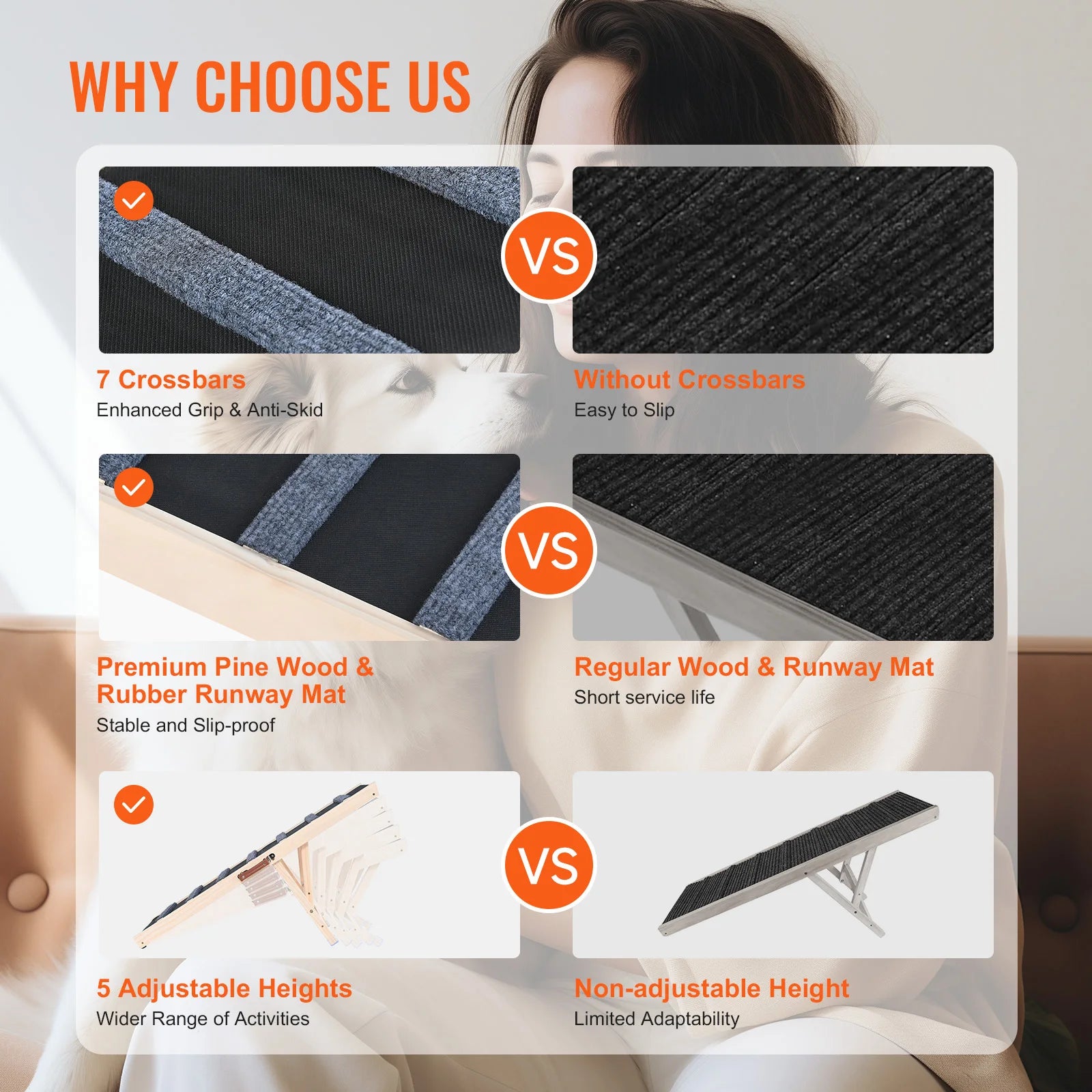 SucceBuy Dog Ramp Folding Ladder Anti Slip Adjustable Height Wooden Pet Ramp Removable For Small And Old Dogs