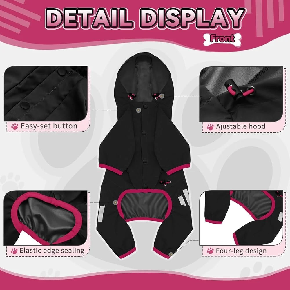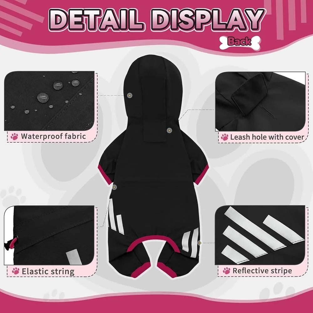 Meet the Waterproof Dog Raincoat With Leash Hole And Reflective Straps — a lightweight, four-leg design that keeps your small to medium dog dry, comfortable, and safe in all weather. Crafted from premium polyester, this rain jacket is soft to the touch, breathable, and built to withstand wet, windy days while still feeling light enough for all-day wear.