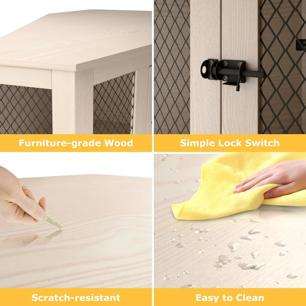 Wooden Dog Crate Furniture 44 Inch End Table With Mesh blends pet comfort with home style. This space-saving corner crate doubles as a sturdy end table, helping you design a stylish, functional room while giving your dog a secure, cozy retreat.