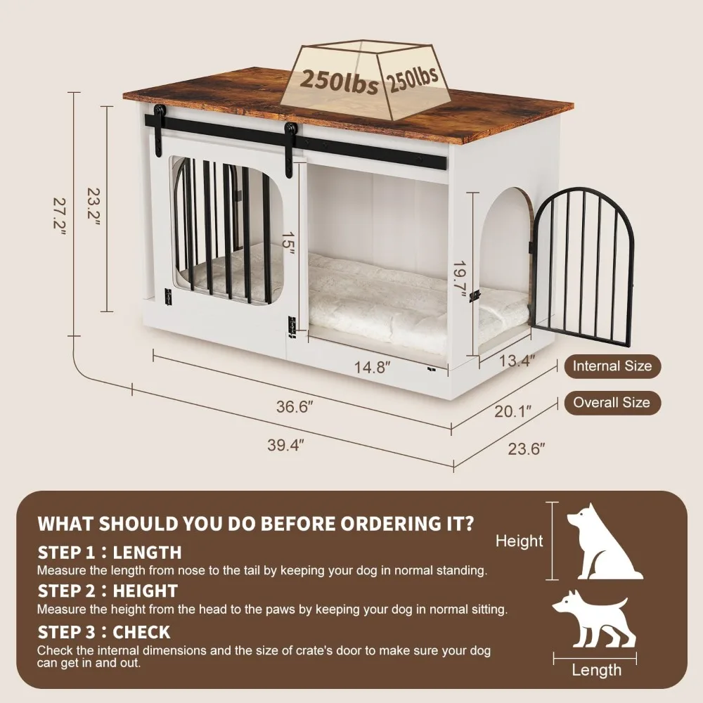 XL Dog Kennel Furniture Farmhouse Crate With Cushion – Indoor White Thick Wooden Dog Cage 39.4 Inches